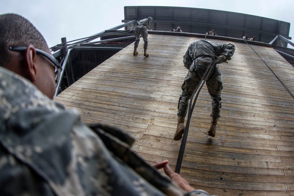 RED PHASE (weeks 3-4): This phase continues building confidence and improving overall fitness. Along with marching and land navigation, Soldiers rappel from a 50-foot wall as part of an obstacle course exercise. OH how I remember that wall, and I, along with many others, were terrified to step off. When I began rappelling down, however, and then hit the ground safely, a sense of accomplishment and satisfaction I’ve rarely felt swept over me.